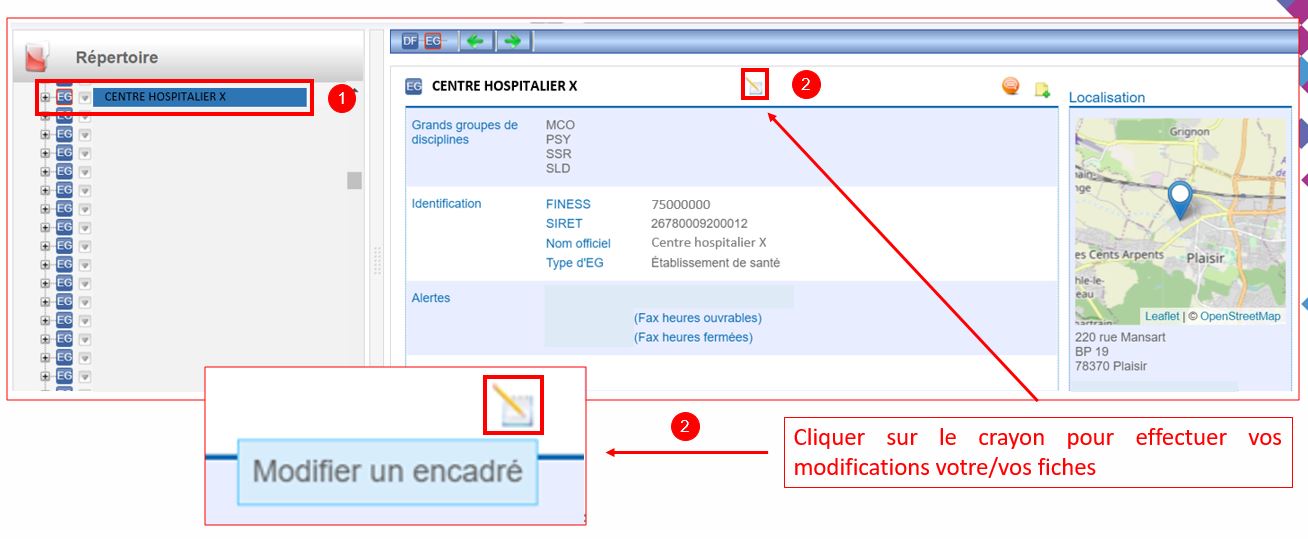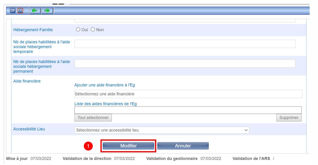Attention : Seules les informations opérationnelles peuvent être réalisées par l’action « modifier un encadré ». Toutes modifications « structurelles » ne peuvent être réalisées que depuis un dossier collaboratif.