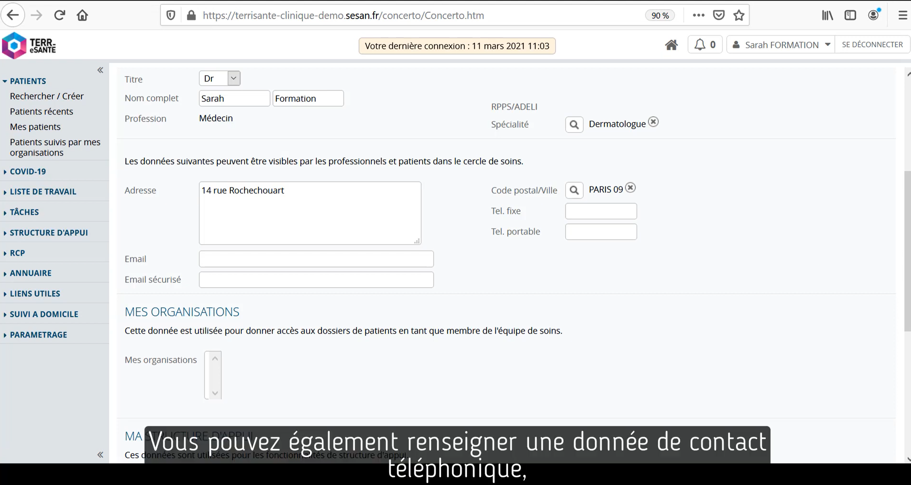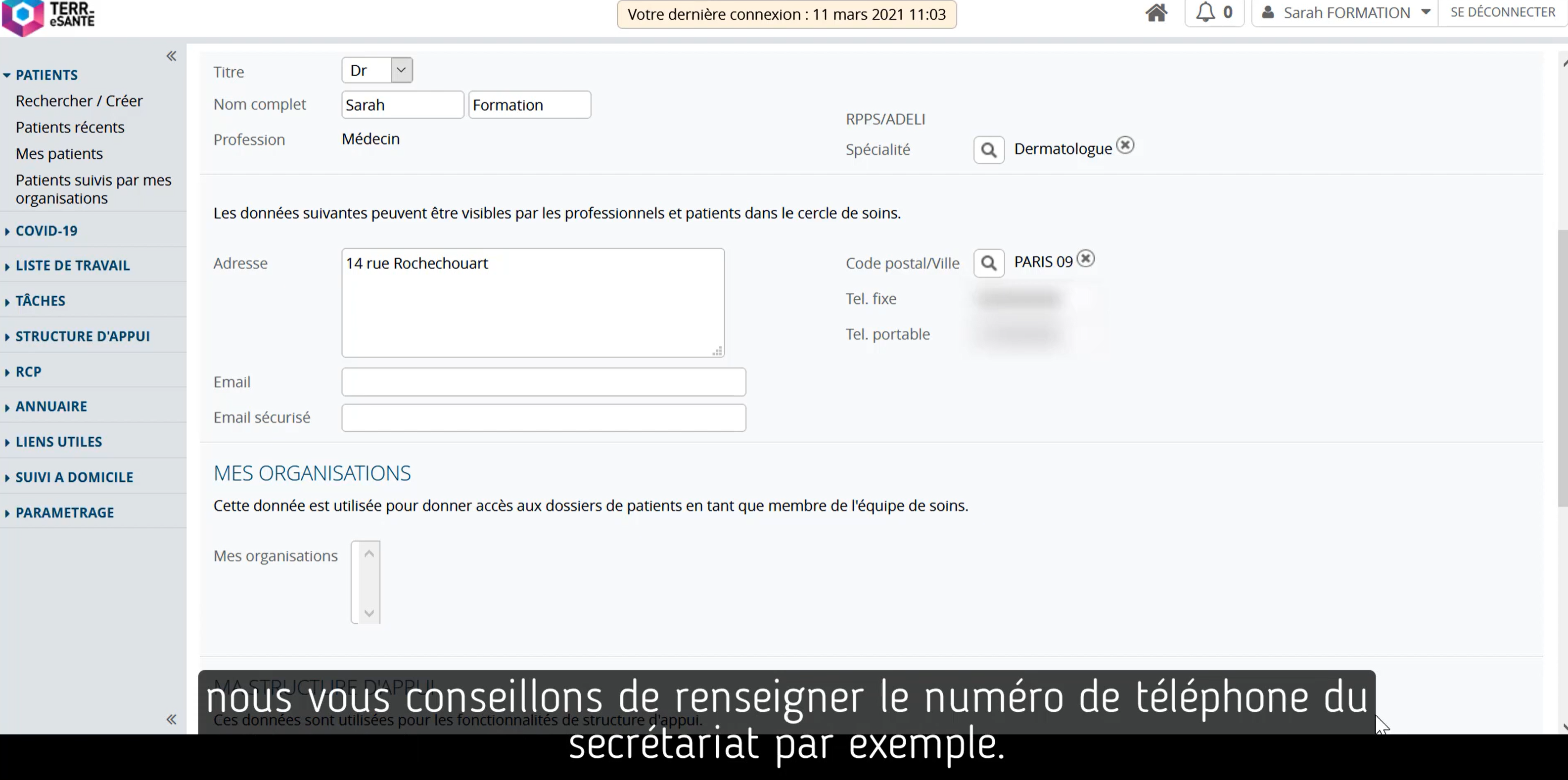 Dans cette vidéo, vous trouverez comment gérer et mettre à jour vos coordonnées visibles dans Terr-eSanté.