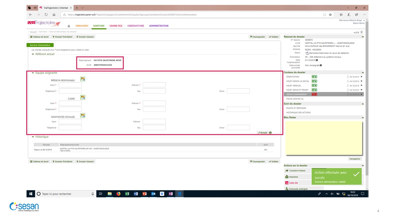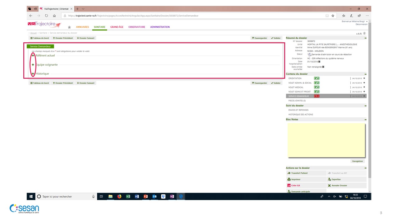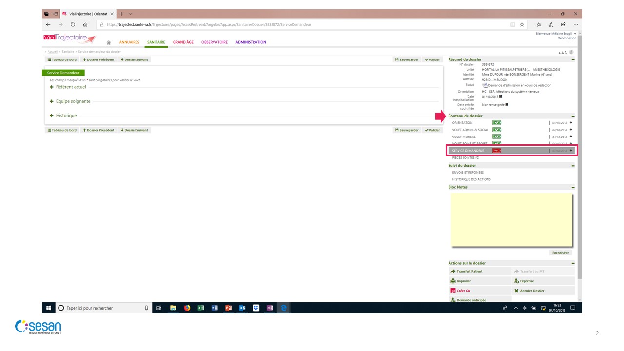 Remplir la demande – Volet Service Demandeur